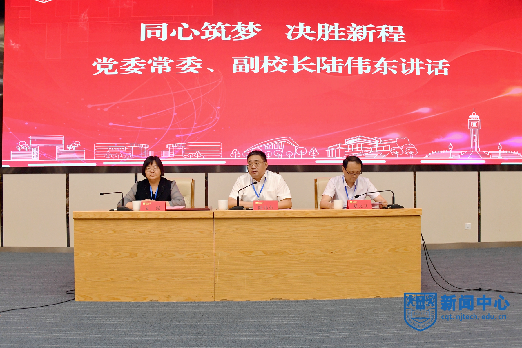 6月23日下午,公司2025年招生宣传出征动员大会在弘毅楼五楼报告厅举行。副董事长陆伟东、刘大卫,党委常委、党委宣传部部长夏侃出席会议。会议由教务处处长陆春华主持。
